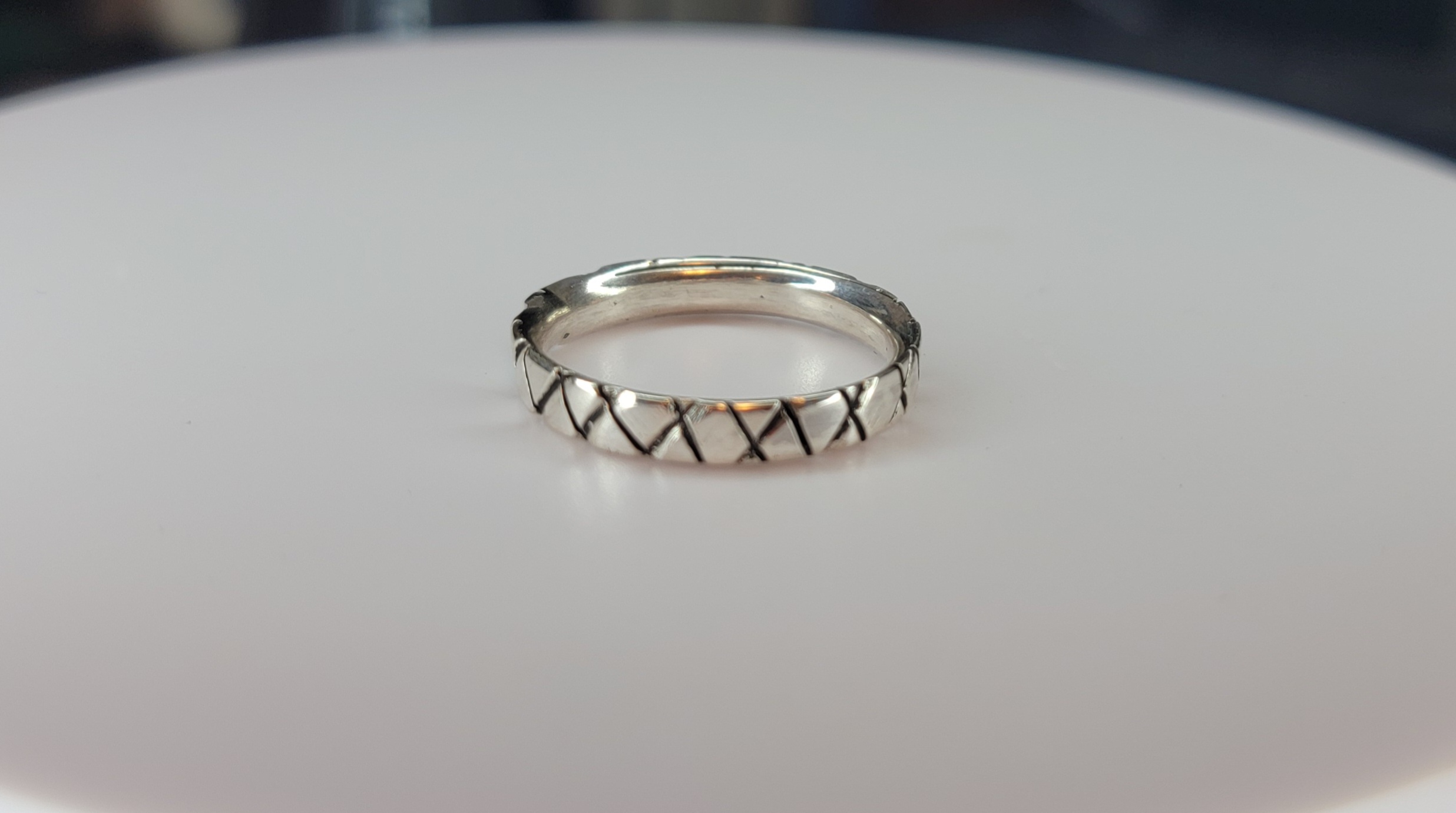 In an attempt to make something for myself and something I would wear. I tried to do an irregular cut and file pattern with snake skin in mind.