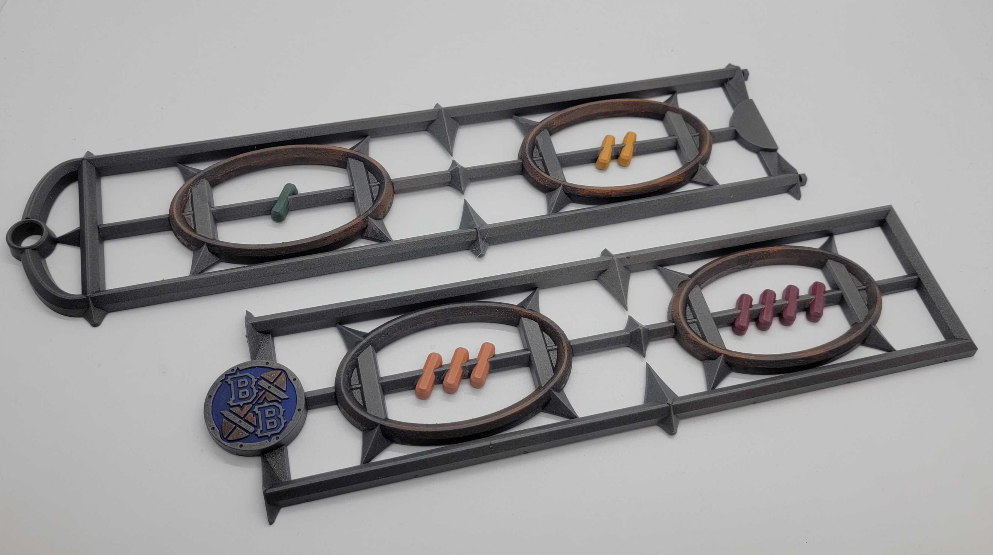 Posted on August 6, 2022 Blood Bowl Templates In preparation for a Blood Bowl league I finally painted up a set of templates. Nothing to extravagant, but I did a rust effect, Typhus Corrosion and Ryza Rust, instead of brown for the ball and filled in the numbers with Blood for the Blood God. Share this: Click to share on X (Opens in new window) X Click to share on Facebook (Opens in new window) Facebook Like Loading... Related