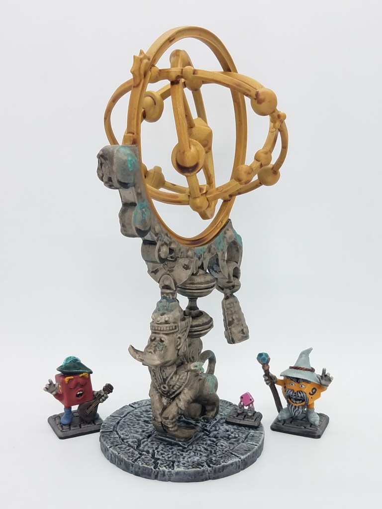 “The party encounters a strange statue, denoting the Icosahedron’s astrological importance. Pip immediately begins climbing on it as Thac0vius scolds him.”